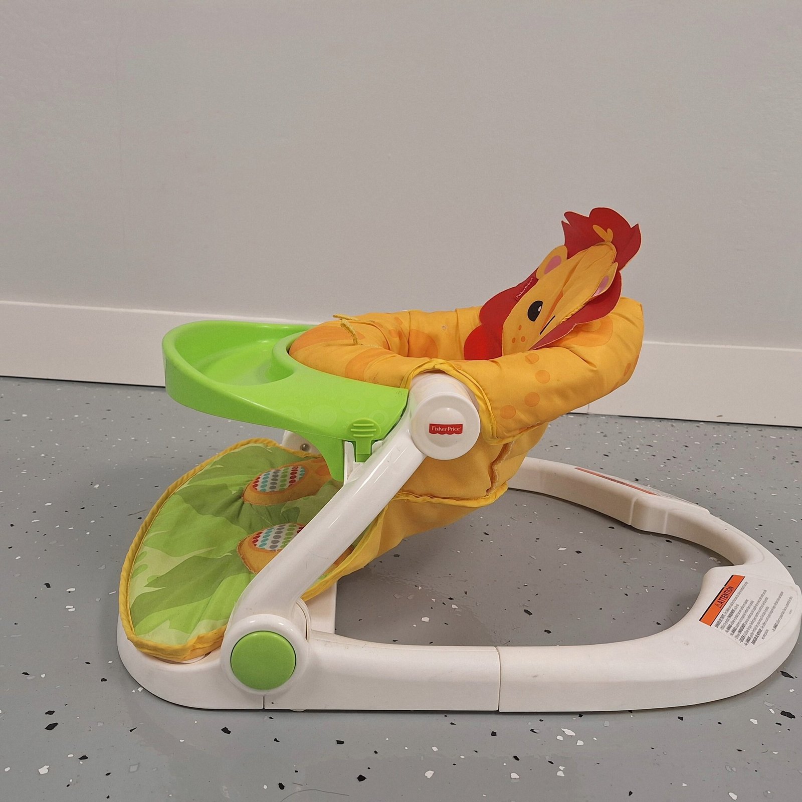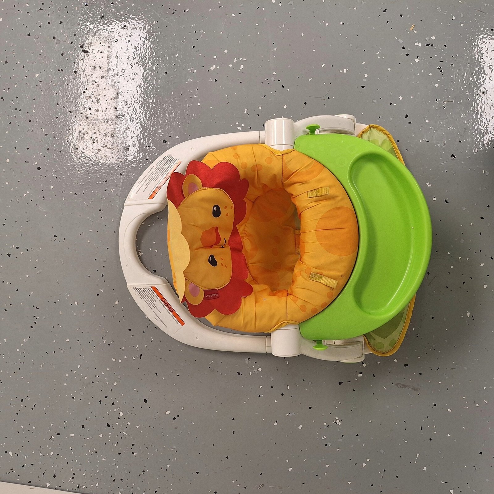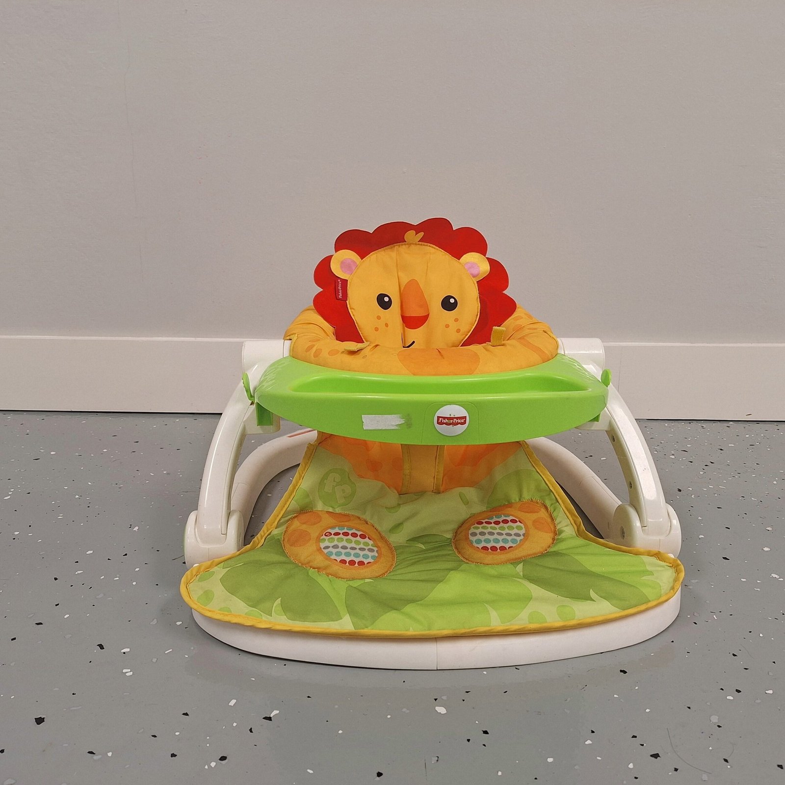 A lion themed Fisher-Price folding floor seat for infants and young toddlers.